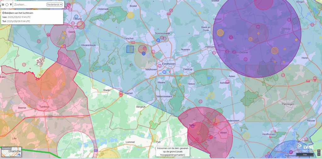 Bij evenementen, incidentbestrijding, staatsbezoeken of bijzondere vluchten kunnen tijdelijk extra verboden of hoogtelimieten gelden. Deze verschijnen als tijdelijke geozones; controleer daarom altijd de datum en tijd.